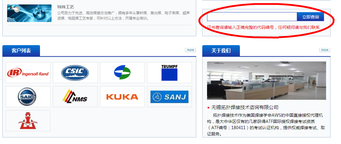 無錫拓撲焊接技術咨詢有限公司作為美國焊接學會AWS的中國直接授權代理機構,是大中華區僅有的幾家獲得ATF國際授權焊接考試資質(ATF編號:180411)的考試認證機構,提供權威焊接考試、取證服務。考試資質(ATF編號:180411)的考試認證機構,提供權威焊接考試、取證服務。